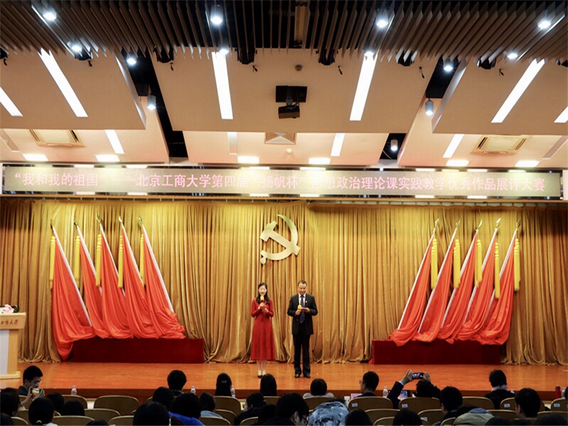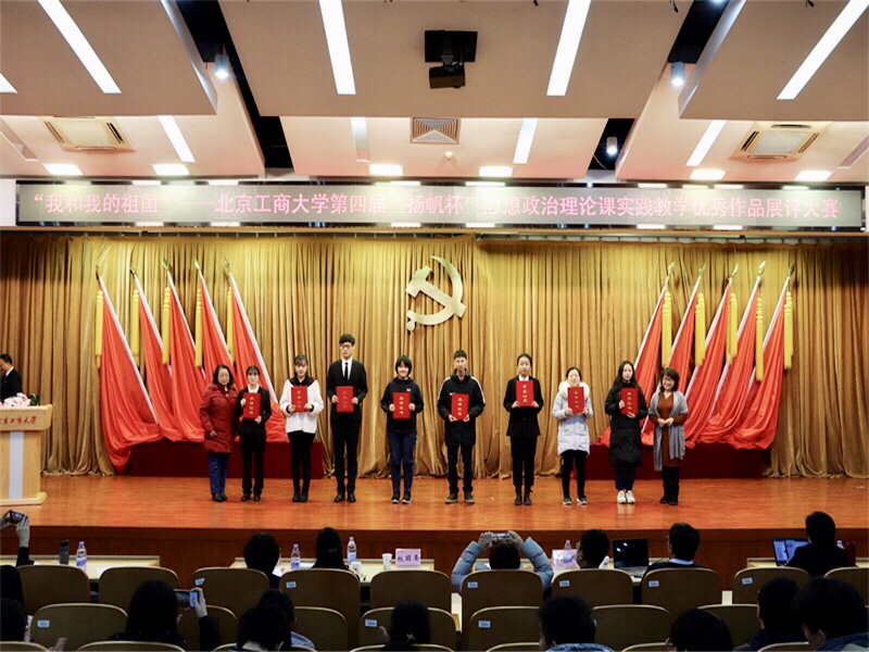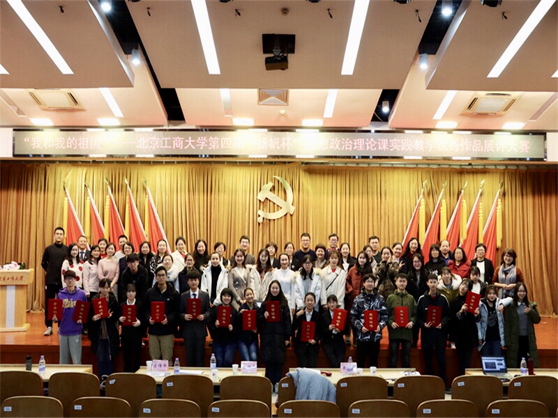 為深入學(xué)習(xí)貫徹習(xí)近平總書記在學(xué)校思想政治理論課教師座談會(huì)上的講話精神,切實(shí)落實(shí)《關(guān)于深化新時(shí)代學(xué)校思想政治理論課改革創(chuàng)新的若干意見》要求,推進(jìn)思想理論課改革創(chuàng)新,深化實(shí)踐教學(xué)改革探索,展示和表彰思想政治理論課社會(huì)實(shí)踐優(yōu)秀作品,12月25日下午,馬克思主義學(xué)院和校團(tuán)委、教務(wù)處聯(lián)合舉辦的“我和我的祖國(guó)”——第四屆“揚(yáng)帆杯”思想政治理論課實(shí)踐教學(xué)優(yōu)秀作品展評(píng)大賽在良鄉(xiāng)校區(qū)舉行。我校馬克思主義學(xué)院院長(zhǎng)王魯娜、常務(wù)副書記文四英、副院長(zhǎng)姚洪越,黨委宣傳部副部長(zhǎng)楊艷萍,團(tuán)委副書記孫惟佳等出席會(huì)議。學(xué)院全體思政課教師以及參與現(xiàn)場(chǎng)展示的16個(gè)小組成員參加大賽。各院系學(xué)生代表近200人觀摩了參賽作品展評(píng)并參與現(xiàn)場(chǎng)實(shí)時(shí)投票。