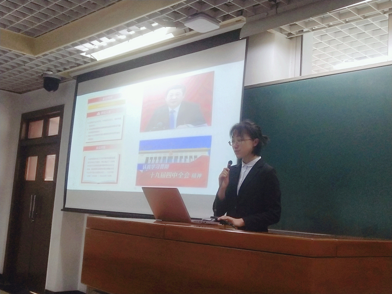 黨的十九屆四中全會是在慶祝新中國成立70周年的重要節點,是在向全面建成小康社會、實現第一個百年奮斗目標邁進的關鍵之年召開的一次重要會議,是一次對國家制度和國家治理體系問題進行開創性研究和系統性解決的中央全會。學生工作部“不忘初心、牢記使命”主題教育宣講團,在前期集中學習十九屆四中全會精神的基礎上,精心準備了宣講材料,宣講員分別從制度構建、優勢解讀、政策構成、實施路徑等維度結合實例進行了展示。經濟學院的宣講員王慧妍從聚焦教育制度發展的角度,通過回溯新中國教育成就,展示了中國共產黨發展為了人民的核心要義,發問式的互動形式引起了聽眾的深入思考,聽眾認識到了中國的發展離不開黨的領導、教育的進步更離不開黨的政策支持。外國語學院的宣講員尤露則把“十三個顯著優勢”作為了講述重點,結合國情實例,把精準扶貧、兩一百年目標融入其中,把集中力量辦大事的大工程、大事業說明白,激發了聽眾強烈的自豪感,堅定了跟黨走,努力學習建設偉大祖國的信心。