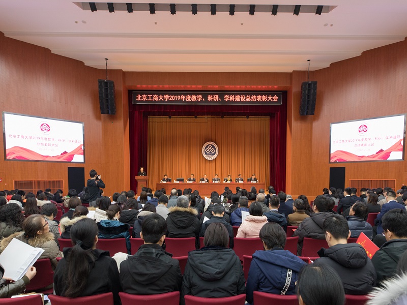 孫寶國校長作總結(jié)發(fā)言。他代表學(xué)校黨政對受表彰的先進集體和個人表示熱烈祝賀,對所有為學(xué)校教學(xué)、科研、學(xué)科建設(shè),以及在管理和服務(wù)工作中做出貢獻的老師表示衷心感謝。他談到,今年的學(xué)校獎勵力度空前,學(xué)校高水平研究型大學(xué)的建設(shè)已步入新的階段,今天的大會既是對去年工作的表彰,也是對今年各項工作的動員。孫寶國校長全面回顧了2019年學(xué)校在教學(xué)、科研和專業(yè)建設(shè)方面取得的成績,他談到,學(xué)校高水平研究型大學(xué)建設(shè)步入新的階段,一是專業(yè)建設(shè)和人才培養(yǎng)進一步提升,本科畢業(yè)生總深造率31.31%,“369”指標(biāo)中的“3”取得突破;7個專業(yè)入選國家級一流本科專業(yè)建設(shè)點,4個專業(yè)入選北京市級一流本科專業(yè)建設(shè)點。二是學(xué)校科研實力進一步增強,2019年學(xué)校科研整體經(jīng)費超過2.4億;2019年兩科基金項目56項,首次突破50項,實現(xiàn)“十三五”規(guī)劃目標(biāo);科研成果質(zhì)量顯著提升,截止1月10日,我校有2835篇論文入選ESI,較2018年增加了44.6%。三是學(xué)科建設(shè)有突破。應(yīng)用經(jīng)濟學(xué)獲批博士后流動站獲批;農(nóng)業(yè)科學(xué)學(xué)科進入ESI排名世界前1%行列;應(yīng)用經(jīng)濟學(xué)、食品科學(xué)與工程和工商管理3個學(xué)科成功入選北京高校高精尖建設(shè)學(xué)科;我校食品營養(yǎng)與人類健康高精尖創(chuàng)新中心培養(yǎng)了大批科研人才,發(fā)表論文數(shù)量多質(zhì)量高,為學(xué)校學(xué)科建設(shè)作出貢獻;2019年軟科排名,學(xué)校6個學(xué)科榜上有名。孫寶國校長指出,2020年是國家全面建成小康社會、實現(xiàn)兩個一百年的決勝之年,也是我校建校70周年,建設(shè)高水平研究型大學(xué)的開局之年,學(xué)校制定了2025行動計劃,以建設(shè)高水平研究型大學(xué)為主線,全體教職員工要團結(jié)一心,凝心聚力,奮勇拼搏;要加強高水平隊伍建設(shè),提升師資隊伍水平;堅持以人才培養(yǎng)為核心,全面提升創(chuàng)新型人才培養(yǎng)質(zhì)量;科學(xué)研究要堅持問題導(dǎo)向、目標(biāo)導(dǎo)向,面向國家需求、面向?qū)W科前沿、面向國民經(jīng)濟主戰(zhàn)場,凝煉科技成果;要以博士點申報和建設(shè)為抓手,以學(xué)科評估為契機,全面提升學(xué)科建設(shè)水平。孫寶國校長強調(diào),全體教職員工要堅持“敢”字當(dāng)頭,堅持“干”字當(dāng)先,為建設(shè)成為高水平研究型大學(xué)而不懈奮斗!