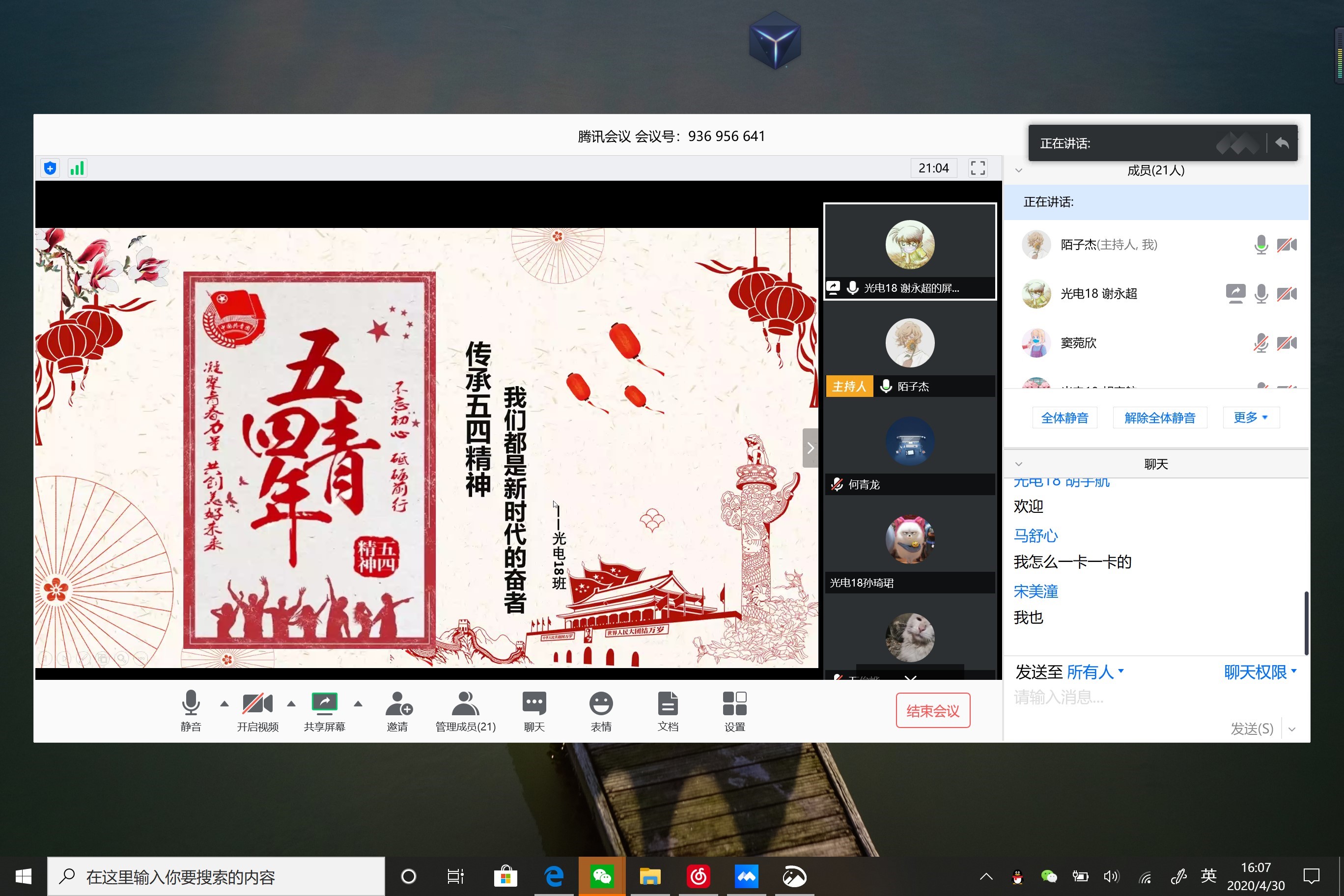 同時,學校團委組織開展“五月的鮮花,青春‘云歌會’”,線上齊唱共青團團歌《光榮啊,中國共青團》,一起回顧那些年我們的青春之音,以此致敬五四,繼往開來,一路高歌,點亮青春。