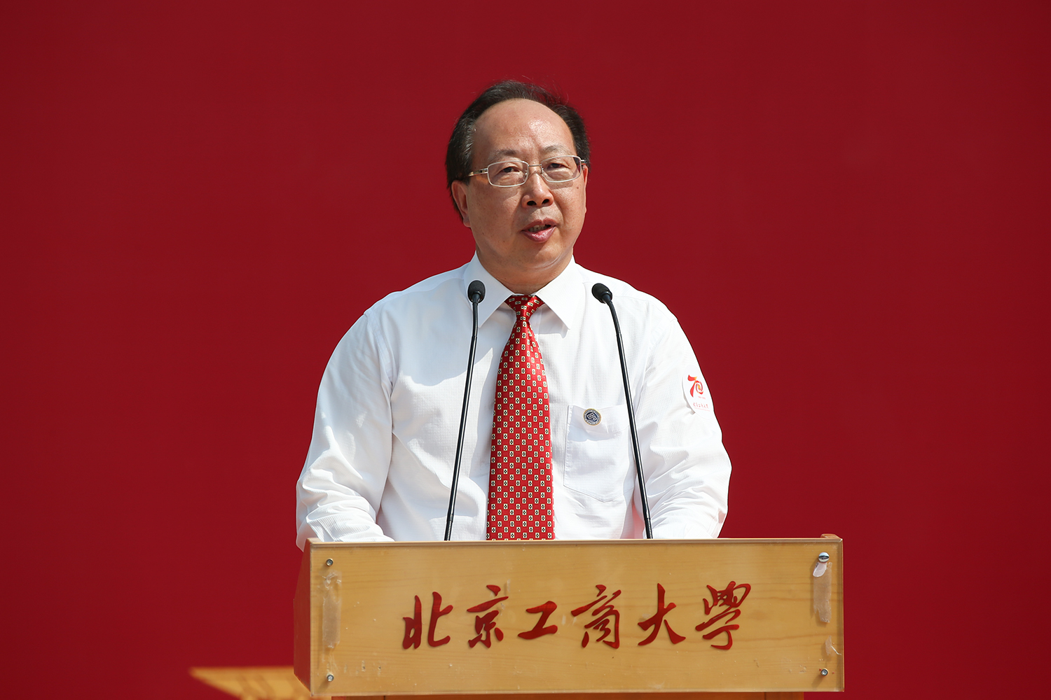 校長孫寶國院士致辭。他代表北京工商大學(xué)向海內(nèi)外校友致以親切問候,向關(guān)心支持學(xué)校發(fā)展的各界友人表示衷心感謝!孫寶國校長指出,70年前,北京工商大學(xué)誕生在京華大地,21年前,北京輕工業(yè)學(xué)院和北京商學(xué)院合并,機(jī)械工業(yè)管理干部學(xué)院并入,一所具有商科、輕工和食品特色的高水平研究型大學(xué)奮勇崛起。70年來,學(xué)校始終堅(jiān)守“工以開物、商以富邦”的初心與使命,不斷提升辦學(xué)實(shí)力和人才培養(yǎng)水平,為國家、首都及行業(yè)發(fā)展育英才、作貢獻(xiàn)。今年5月,學(xué)校被確定為北京市重點(diǎn)建設(shè)的高水平研究型大學(xué),這既是對(duì)學(xué)校綜合實(shí)力的肯定,更是對(duì)學(xué)校未來發(fā)展的希望和鞭策,是獻(xiàn)給學(xué)校70年華誕最好的禮物。今天,全體北工商人充滿自信地向海內(nèi)外校友和社會(huì)各界宣告,北京工商大學(xué)的發(fā)展進(jìn)入了高水平研究型大學(xué)建設(shè)的新時(shí)代。70年來,北工商人秉承“求真、立德、勤奮、創(chuàng)新”的校訓(xùn),長歌奮進(jìn)、砥礪前行,在人才培養(yǎng)、科學(xué)研究、社會(huì)服務(wù)、文化傳承與創(chuàng)新、國際交流與合作方面取得了豐碩成果。學(xué)校現(xiàn)已形成從本科、碩士、博士到博士后完整的人才培養(yǎng)體系;擁有7個(gè)國家級(jí)一流本科專業(yè)、4個(gè)北京市級(jí)一流本科專業(yè)、3個(gè)北京市高精尖學(xué)科;農(nóng)業(yè)科學(xué)學(xué)科進(jìn)入ESI排名全球前1%;食品科學(xué)與工程專業(yè)是國內(nèi)第一個(gè)同時(shí)通過IFT和IUFoST國際認(rèn)證的專業(yè);人文社會(huì)科學(xué)通過了“英國精算師協(xié)會(huì)考試豁免認(rèn)證”,成為國內(nèi)獲批認(rèn)證的8所院校之一。學(xué)校堅(jiān)持立德樹人根本任務(wù),構(gòu)建全員育人機(jī)制,將思想政治工作貫穿教育教學(xué)全過程,北工商學(xué)子們積極參加學(xué)科競(jìng)賽并屢獲佳績(jī),5年來獲得省部級(jí)以上獎(jiǎng)項(xiàng)1224項(xiàng)。學(xué)校還培育和凝聚了一批學(xué)術(shù)造詣高深、享有較高知名度和影響力的學(xué)者,5年來獲批國家“兩科”基金項(xiàng)目220項(xiàng);獲批省部級(jí)以上科研平臺(tái)23個(gè),為科技進(jìn)步、國家經(jīng)濟(jì)和社會(huì)發(fā)展做出了重要貢獻(xiàn)。學(xué)校積極響應(yīng)國家“一帶一路”倡議、京津冀協(xié)同發(fā)展戰(zhàn)略,與30個(gè)國家和地區(qū)的63所高校及科研機(jī)構(gòu)建立了廣泛而深入的國際合作研究和學(xué)術(shù)交流關(guān)系;牽頭和參與成立3個(gè)學(xué)科類“京津冀協(xié)同創(chuàng)新聯(lián)盟”,為區(qū)域經(jīng)濟(jì)社會(huì)發(fā)展提供“北工商智慧”。