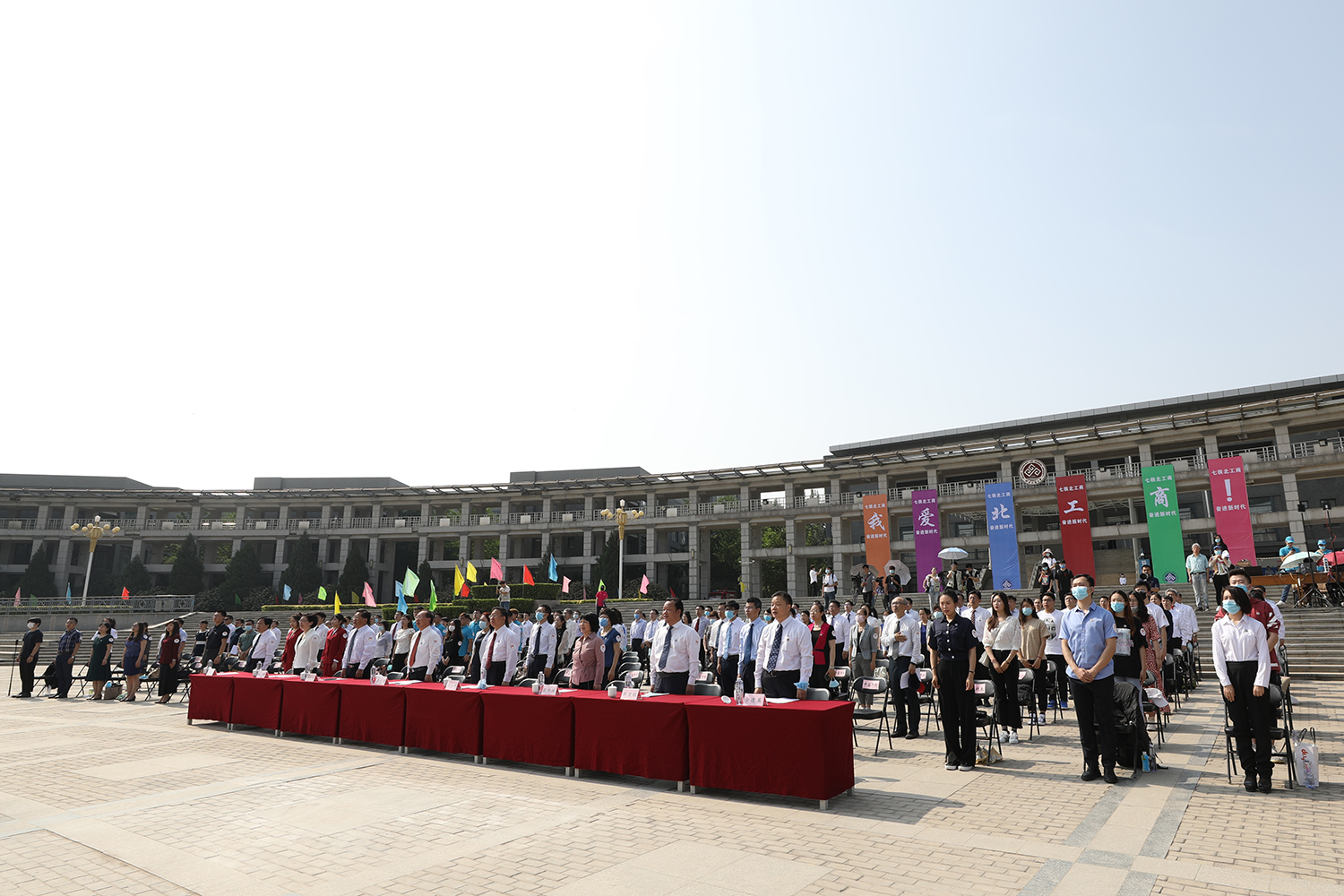 六月的北工商,萬木蔥蘢,繁花似錦。6月12日,學(xué)校迎來70年華誕。早上9時(shí)整,惠風(fēng)和暢,北京工商大學(xué)校歌發(fā)布會(huì)暨校園云開放日活動(dòng)在良鄉(xiāng)校區(qū)求知廣場(chǎng)隆重舉行。校領(lǐng)導(dǎo)黃先開、孫寶國、張德玉、歐陽媛、張?jiān)拧⑧嵨募t、賈英民、方德英,全體中層干部、教師代表、學(xué)生代表、校友代表、特邀嘉賓出席活動(dòng)。全球北工商人云端相聚,云游校園,共同見證校歌誕生。學(xué)校校慶辦公室主任張曉磊主持活動(dòng)。