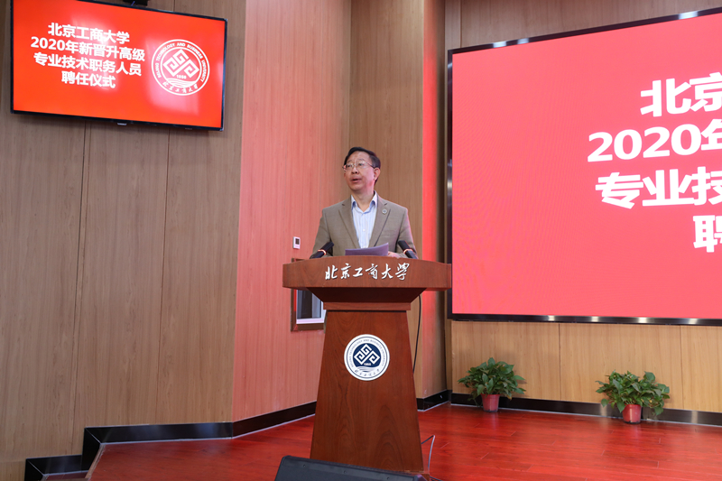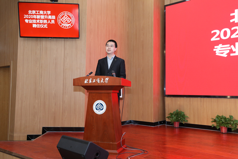 輕工科學(xué)技術(shù)學(xué)院楊紹祥、經(jīng)濟(jì)學(xué)院王愛萍分別代表受聘教授、副教授發(fā)言。他們回顧了在學(xué)校的成長歷程,感恩學(xué)校提供的平臺(tái),感謝領(lǐng)導(dǎo)、同事們的關(guān)心和支持,并表示,面對(duì)學(xué)校高水平研究型大學(xué)的發(fā)展目標(biāo),要在人才培養(yǎng)與學(xué)術(shù)研究上確立更高的目標(biāo)。楊紹祥談到,要發(fā)揚(yáng)“三種?!本?,以此次聘任為新的起點(diǎn),保持慎終如始、戒驕戒躁的清醒頭腦,保持不畏艱險(xiǎn)、銳意進(jìn)取的奮斗韌勁,繼續(xù)為北工商建設(shè)高水平研究型大學(xué)貢獻(xiàn)力量。王愛萍提出,要堅(jiān)定理想信念,以“愛”育人;堅(jiān)持腳踏實(shí)地,扎實(shí)鉆研;堅(jiān)守家國情懷,回饋社會(huì),將個(gè)人的發(fā)展與學(xué)科發(fā)展、人才培養(yǎng)工作有機(jī)結(jié)合起來。