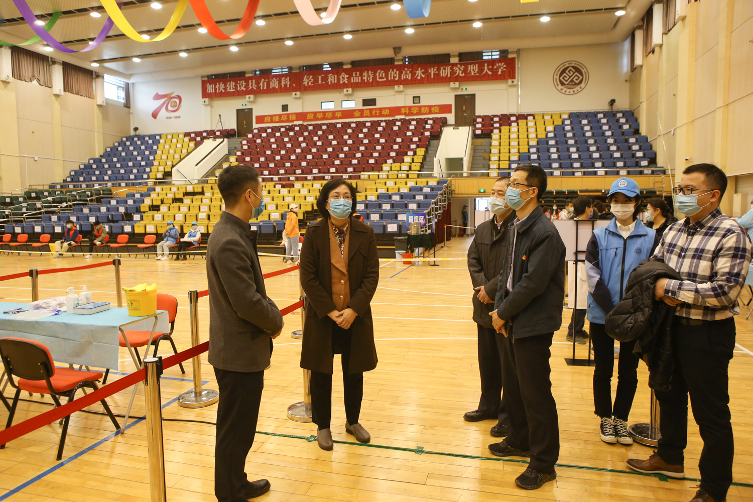 為確保新冠疫苗接種工作順利進行,學校制定《北京工商大學新冠疫苗接種實施方案》,成立了以黨委書記黃先開、校長孫寶國為組長的新冠疫苗接種工作專班,下設綜合協調組、督導檢查組、宣傳輿情組、組織實施組、物資保障組、安保和秩序保障組、信息技術保障組等7個工作組,加強組織領導,強化體制流暢、宣傳引導和督導檢查,層層落實責任,保障學校疫苗接種工作有序進行。