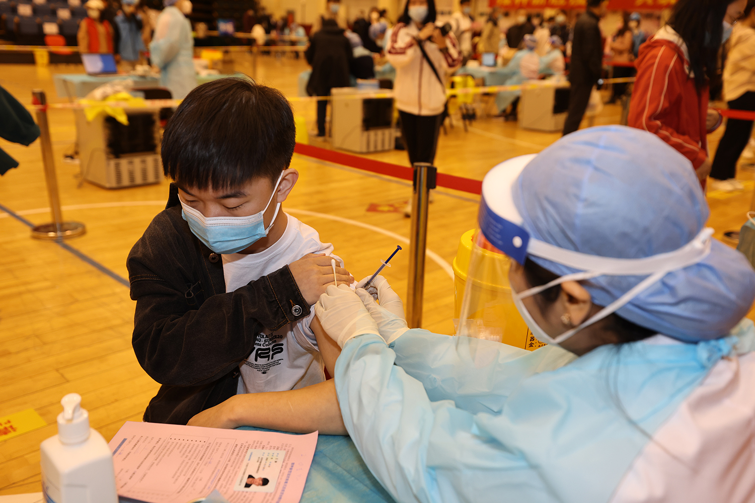 早8點,張耘前往疫苗接種現場檢查指導工作,確保接種工作的有序開展。在工作人員的引導下,師生在等待區按照安全距離有序,通過測溫區測試體溫正常后進入場地。到達登記區,醫務人員進行健康狀況詢問,同學們也可進行疫苗接種相關問題咨詢,確認無異常情況可接種疫苗后,填寫知情同意書和留觀提示卡。在接種區,進行身份登記,刷居民身份證錄入信息后進行疫苗接種,并在留觀30分鐘后及時有序離開現場。