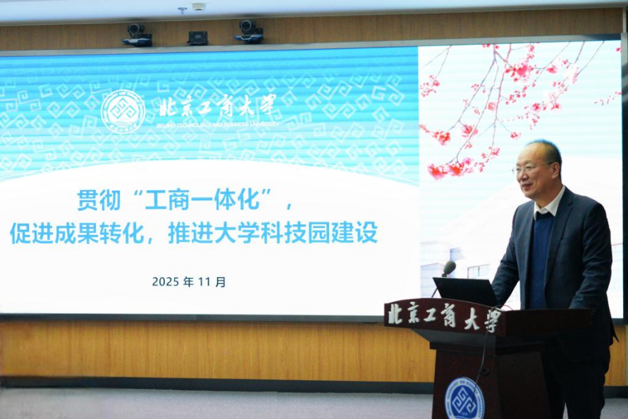 錢立軍代表科管辦以“貫徹工商一體化,促進(jìn)成果轉(zhuǎn)化,推進(jìn)大學(xué)科技園建設(shè)”為主題進(jìn)行匯報(bào),詳細(xì)介紹了大學(xué)科技園建設(shè)的整體框架、建設(shè)思路、企業(yè)入孵程序等工作。他強(qiáng)調(diào),大學(xué)科技園是鏈接創(chuàng)新與產(chǎn)業(yè)的關(guān)鍵橋梁,更是學(xué)校服務(wù)國家戰(zhàn)略和區(qū)域經(jīng)濟(jì)發(fā)展的重要平臺(tái),學(xué)校將以此為驅(qū)動(dòng),有力推動(dòng)科技成果轉(zhuǎn)化,不斷激發(fā)學(xué)科建設(shè)與科技創(chuàng)新活力,為國家科技發(fā)展、實(shí)現(xiàn)高水平科技自立自強(qiáng)貢獻(xiàn)北工商力量。