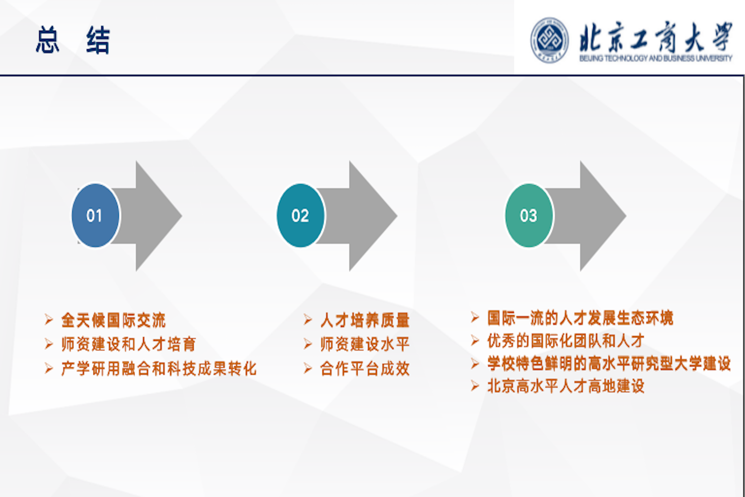 劉敏華作為受邀高校代表在分論壇作題為“地方院校創新型國際化人才培養的實踐與思考”的主旨報告。他表示,創新型人才培養和高等教育國際化是高校的主要職能之一,以高水平中外合作辦學推動新時代人才工作,是深入實施新時代人才強國戰略,加快建設世界重要人才中心和創新高地的必然要求。他指出,地方高校在辦學定位和辦學理念方面具有自身特點,北京工商大學從自身辦學定位和優勢學科出發,與世界一流大學愛爾蘭科克大學聯合開展中外合作辦學項目,通過制定既符合雙方大學定位、體現雙方優勢,又能滿足國內人才市場需求的創新性培養方案,配備雙方優質教學、實習實踐資源,雙方互派師資授課,建立了一整套中外合作辦學項目培養質量監控體系和招生就業服務體系,形成了服務于高水平人才培養的中外合作辦學體系。他強調,未來北工商將進一步完善中外合作辦學項目在人才培養質量、師資建設水平、合作平臺成效等方面的政策措施,營造國際一流的人才發展生態環境,吸引集聚更多優秀的國際化團隊和人才來校工作,為新時代首都發展培養輸送供需匹配的創新型國際化人才,推進學校特色鮮明的高水平研究型大學建設,服務北京高水平人才高地建設。