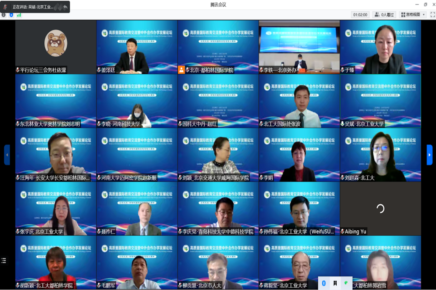 北京市教委副主任孫其軍、北京市政府外辦副主任李軼、中國教育國際交流協會副秘書長安延、教育部國際司涉外監管處王婧瑤副處長(主持工作)以及來自英國帝國理工學院、倫敦大學學院、愛爾蘭都柏林大學、北京理工大學、北京航空航天大學、哈爾濱工業大學、上海紐約大學、寧波諾丁漢大學等100余所國內外院校近300余人參加了此次論壇。
