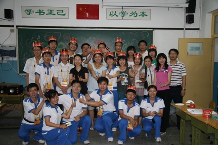 伴隨著“生日快樂歌”的優美旋律伴隨下,所有帶隊老師為各自隊伍的學生戴上了生日帽,并獻上附所有老師簽名的生日賀卡。
