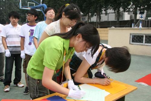 A3分團(tuán)陳雪雷同學(xué)在完成了傳遞之后笑容燦爛地感慨道:“百年奧運(yùn),百年夢想,它飽含了全國人民付出的努力和心血——傳遞火炬恰恰就是見證.能夠有機(jī)會(huì)與火炬親密接觸真是太榮幸了!”同學(xué)們紛紛在留言簿上寫下心語表達(dá)對(duì)奧運(yùn)的祝福。帶隊(duì)老師們心情也格外激動(dòng),紛紛加入到喜迎火炬的隊(duì)伍中,大家振臂高呼:“北工商加油!奧運(yùn)加油!”