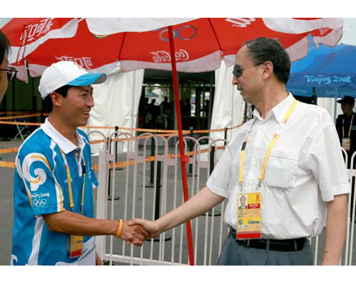 在我校奧運村交通管理志愿者所服務的各崗口,盧書記親切地與志愿者們交談,向他們贈送了防曬霜等慰問品,并向部分中簽志愿者贈送了奧運比賽門票。看到這些每天都在室外工作的志愿者們曬得黑紅的皮膚,了解到他們每天至少要工作八個小時,盧思鋒叮囑他們要注意身體,要珍惜機遇,即使條件艱苦也要把工作做好。談到太陽暴曬,盧思鋒還對志愿者們講述了自己的經歷,希望大家能夠克服這些困難,因為在做貢獻的同時必定也能擁有不平凡的收獲。盧書記了解到在交通管理的志愿者中,研究生們挑起重擔,其中有四個女生也在室外每天工作八個小時。盧思鋒特別叮囑八位研究生志愿者要能夠起帶頭作用,在各個方面起到表率作用,大家也表示能夠抓住這個機遇很不容易,會格外珍惜。