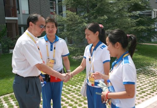 8月16日,奧運賽程已經過半,我校黨委副書記、校奧運籌辦與賽時保障指揮部常務副總指揮盧思鋒代表學校領導,赴奧運村看望了我校志愿者。團委書記呂素香、志愿者領隊文四英老師陪同并介紹我校志愿者的工作狀況。