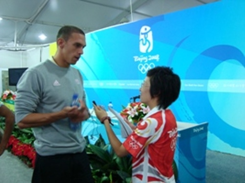 而對于差點與本次奧運會擦肩而過的伊拉克,我采訪的側重點又有所不同,我問他們代表團團長,經歷了被取消參賽資格后又被恢復資格的曲曲折折,如今有什么話想說?在被取消資格之后,是否還在堅持訓練,同時作了哪些工作?由于事先查了他們的一個在上屆奧運會上成績不錯女運動員的資料,知道她在得到被取消資格后說了這樣一句揪人心肺的話:“Who knows whether I can live to 2012?” 我在代表團中找到了這位姑娘,我請她回憶得知重新恢復參賽資格時的瞬間的心情以及本屆奧運會的個人期待。這位姑娘雖然不會說英語,但是通過翻譯我還是感受到了她對于能夠來北京參賽的熱切的期望。所有這些在讓我感動之余,不斷加深我對奧林匹克精神的理解。