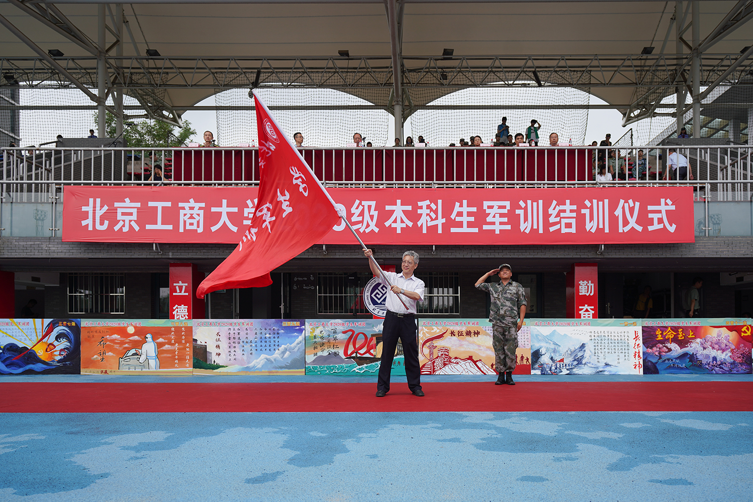 黃先開作總結(jié)講話。他代表學(xué)校黨委行政對高質(zhì)量完成此次軍訓(xùn)任務(wù)的2020級2823名參訓(xùn)同學(xué)們表示熱烈祝賀,對付出辛勤汗水的教官、全體參訓(xùn)教師、參與軍訓(xùn)保障工作全體教職員工致以最誠摯的感謝!他表示,學(xué)子們以氣宇軒昂、整齊劃一的分列式,巾幗不讓須眉的匕首操,威武雄壯的警棍盾牌操,獨(dú)具特色的旗語操,一招制敵的擒敵拳,貼近實(shí)戰(zhàn)的綜合戰(zhàn)術(shù)演練等軍事項(xiàng)目匯演,為大家呈現(xiàn)了一場軍事技能的視覺盛宴,彰顯出新時(shí)代北工商學(xué)子的風(fēng)采。黃先開書記指出,此次軍訓(xùn)對于培養(yǎng)愛黨愛國情懷、樹立紀(jì)律意識(shí)、增強(qiáng)集體榮譽(yù)感、磨煉意志品質(zhì)具有重要的意義。他希望同學(xué)們能將軍訓(xùn)成果轉(zhuǎn)化為今后的精神力量和行為指南:一是保持優(yōu)良作風(fēng),堅(jiān)定在逆境中勇于拼搏的信念。要珍惜軍訓(xùn)這堂人生大課,把困難與挑戰(zhàn)當(dāng)做人生的寶貴財(cái)富,把吃苦耐勞的韌性、昂揚(yáng)向上的斗志、開拓進(jìn)取的精神帶到今后的學(xué)習(xí)生活中,堅(jiān)定理想信念,錘煉意志品質(zhì),成就精彩人生。二是砥礪愛國情懷,弘揚(yáng)在成長歷程中甘于奉獻(xiàn)的精神。要以戍邊烈士陳祥榕為榜樣,牢記不怕犧牲、甘于奉獻(xiàn)的軍人血性,義無反顧維護(hù)祖國利益不受侵犯。三是樹立鴻鵠之志,形成在偉大時(shí)代中胸懷天下的奮斗目標(biāo)。要把個(gè)人價(jià)值的實(shí)現(xiàn)和國家、民族的發(fā)展復(fù)興統(tǒng)一起來,把個(gè)人目標(biāo)與時(shí)代發(fā)展統(tǒng)一起來,胸懷大局,為實(shí)現(xiàn)中華民族偉大復(fù)興的中國夢貢獻(xiàn)青春力量。希望全體同學(xué)能以實(shí)現(xiàn)中華民族偉大復(fù)興為己任,增強(qiáng)做中國人的志氣、骨氣、底氣,不負(fù)時(shí)代,不負(fù)韶華,不負(fù)黨和人民的殷切期望!