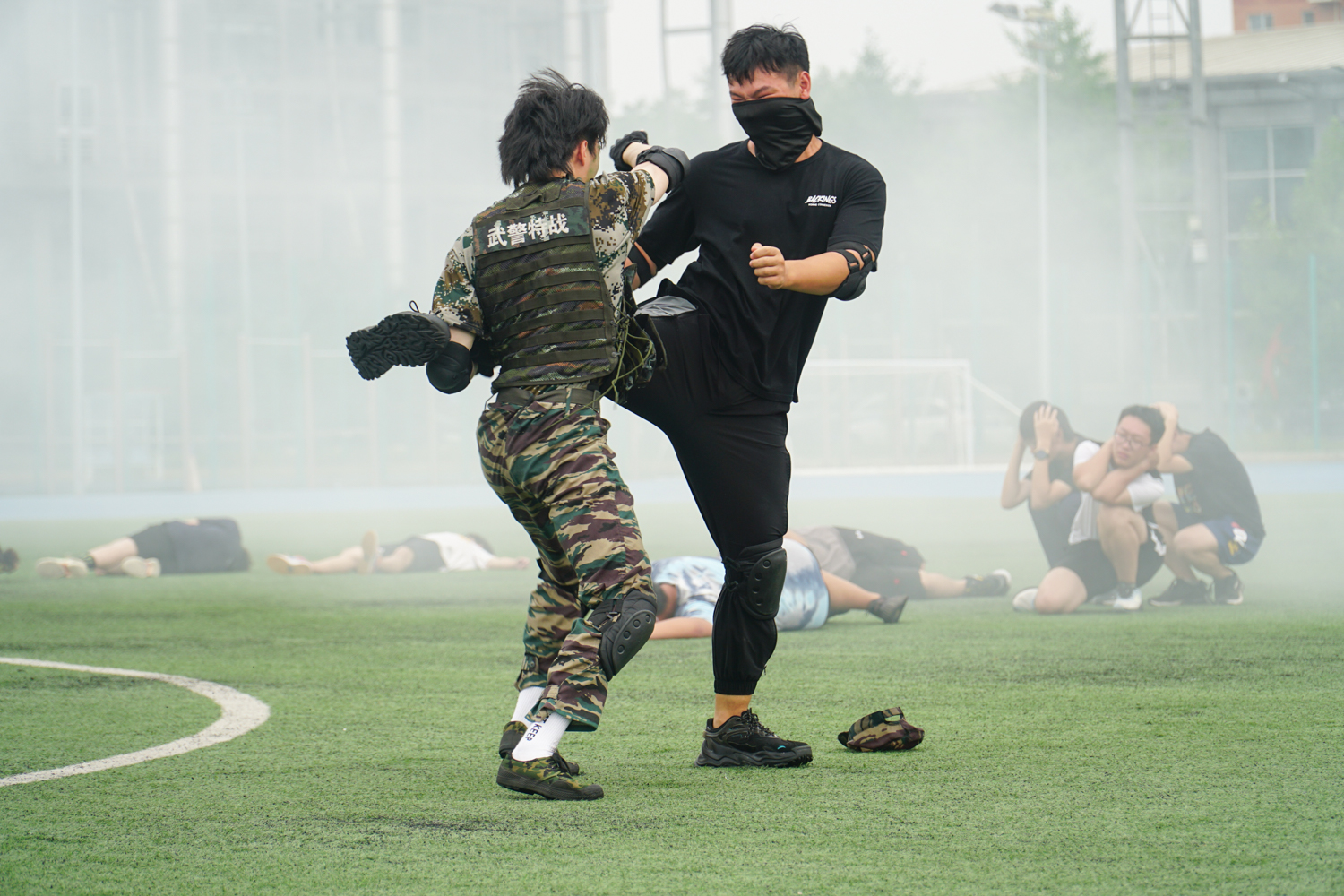 在2020級本科生軍訓(xùn)成果展示中,同學(xué)們以高昂的士氣、嚴(yán)整的軍容接受檢閱。來自6個(gè)營的18個(gè)方隊(duì)踏著激昂的《中國人民解放軍進(jìn)行曲》依次經(jīng)過主席臺(tái),進(jìn)行分列式表演。隨后進(jìn)行軍事科目表演,同學(xué)們分別進(jìn)行了隊(duì)列表演、匕首操、警棍盾牌操、旗語操、擒敵拳、綜合戰(zhàn)術(shù)演練。同學(xué)們堅(jiān)毅的眼神、鏗鏘的腳步、洪亮的口號(hào)彰顯了新時(shí)代北工商學(xué)子青春昂揚(yáng)的精神風(fēng)貌,贏得了在場領(lǐng)導(dǎo)和老師們的陣陣掌聲與一致好評。