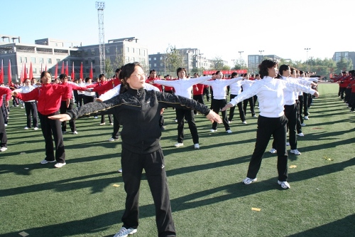 上學期末,學校恢復了工間操。本學期初,學校決定舉辦教職工第八套廣播操表演賽。一個月以來,各基層工會主席認真組織,各級黨政領導大力支持,廣大教師積極響應,全校上下都行動起來學習第八套廣播體操。很多教學單位克服白天老師課多、人無法聚齊的困難,選擇在晚上、在周末苦練;職能部門和教輔單位針對兩地辦公、人員分散的現狀,決定先看光盤以部門為單位小規模練習,再集中起來糾錯,統一動作。各基層單位不僅從資金上大力支持本項活動,廣大的中層干部還主動申請成為參賽隊伍的一員積極備戰;很多老師更是克服孩子小、家住得遠、課多、科研任務重等困難,盡最大努力參加賽前的練習。一次次的訓練,使教工們深深體會到積極開展廣播操活動,能起到舒展身體、放松身心、減輕壓力的良好作用。有的基層工會甚至還倡議本單位周二的集中一定在會前會中和會后做三遍廣播操。