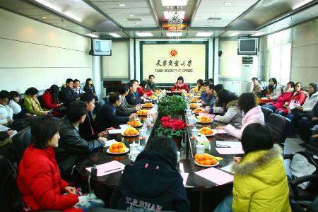 抵達(dá)天津后,考察小組一行人等首先來到了兄弟院校天津商業(yè)大學(xué),這是當(dāng)天考察的第一站。在多功能會(huì)議廳,天津商業(yè)大學(xué)副校長滕建輔、研究生部主任姜子濤、研究生部副主任趙建洪以及部分研究生學(xué)生干部盛情接待了我校研究生部考察小組一行,隨后雙方進(jìn)行了親切的座談交流。在座談中,天津商業(yè)大學(xué)副校長滕建輔首先向我校研究生部考察小組表示歡迎,隨后介紹了天津商業(yè)大學(xué)近年來的學(xué)校發(fā)展?fàn)顩r、學(xué)科建設(shè)進(jìn)展、招生規(guī)模、畢業(yè)生就業(yè)形勢(shì)等方面的情況。天津商業(yè)大學(xué)研究生部主任姜子超,向考察小組介紹了本校研究生招生規(guī)模、培養(yǎng)機(jī)制、就業(yè)渠道、專業(yè)設(shè)置等方面的情況。董竹娟在隨后的講話中,對(duì)天津商業(yè)大學(xué)的盛情款待表示了衷心感謝,她簡(jiǎn)要介紹了我校研究生部的各項(xiàng)工作的運(yùn)行和進(jìn)展?fàn)顩r,并向天津商業(yè)大學(xué)研究生部師生發(fā)出了盛情邀請(qǐng),希望他們有機(jī)會(huì)也來我校參觀考察,加強(qiáng)交流,促進(jìn)合作,攜手發(fā)展,共同進(jìn)步。兩校的學(xué)生組織代表也進(jìn)行了交流探討,我校研究生部宣傳中心還特意將最新出版的《研究生》雜志贈(zèng)與天津商業(yè)大學(xué)研究生部。交流座談之后,考察小組在天津商業(yè)大學(xué)研究生部副主任趙建洪的帶領(lǐng)下,參觀了天津商業(yè)大學(xué)校園。