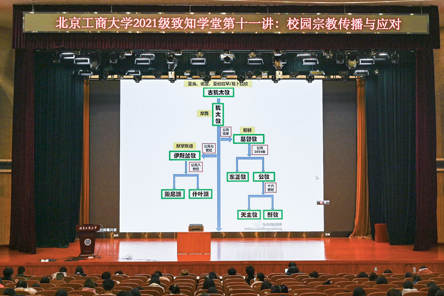 11月18日,中央社會主義學院教研部副主任左鵬教授在良鄉主校區,以《校園宗教傳播與應對》為題進行主題講座。左鵬分別從宗教的定義、起源和本質這三個方面為大家介紹了宗教的基本信息,并詳細介紹了宗教定義中,“宗”指的是創始人、崇拜的對象,“教”是指有一定的祭祀儀式。現如今中國的宗教發展較為迅速,信教人數也在持續增長,與此同時,在信教群體中青年人信教人數所占比重持續增加,信教者受教育水平逐步提高。左鵬通過多則實例辯證闡述了宗教信仰對學生的影響,并展示了當前宗教在高校中的傳播形式,如“團契組織”、“網絡傳教”等,提醒同學們有效識別宗教內容,并進行針對性的防范措施。