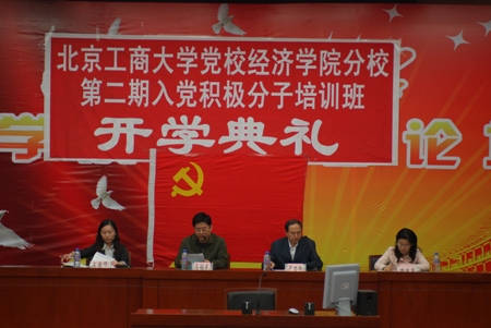 4月20日晚,黨校經濟學院分校第二期入黨積極分子培訓班在良鄉校區舉行。校黨委副書記盧思鋒出席典禮并給學員們作題為《為什么要科學發展》的開班黨課。經濟學院黨總支副書記、分黨校副校長馬韜光,經院團總支書記楊艷萍,學院輔導員以及此次培訓班全體學員參加開學典禮。