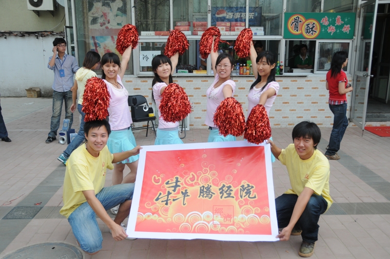在擁擠的人群中,經濟學院的宣傳展板讓人眼前一亮。經院宣傳板頗具心意,從條幅標語,宣傳畫,到各色板報,全部是由同學手繪完成,雖不完美,卻盡顯精致和溫馨。他們還派出了旅游觀光團,帶新同學參觀校園,介紹校園環境和各項基礎設施。更加熱鬧喜慶的是,經院的拉拉隊也為新生表演了精彩的舞蹈,活力四射、激情澎湃。