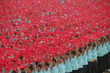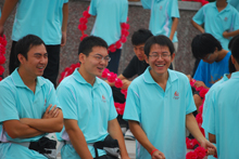 9月12日,“秋老虎”發威,早晨八點已是艷陽高照。8:05,身著淡藍色運動服、手持粉紅花環的國慶方隊參訓人員準時在操場集合,吹響了沖刺階段訓練的號角。