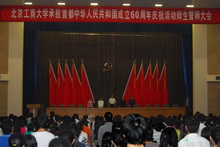 還有不到20小時,建國60周年盛大典禮就將隆重舉行。屆時,我校參加國慶慶祝活動的兩千多名師生將身著鮮艷的演出服裝,手持花環,走過天安門前,接受黨和人民的檢閱。9月30日下午,學校在良鄉校區A報告廳舉行了北京工商大學承擔首都中華人民共和國成立60周年慶祝活動師生誓師大會。誓師大會由學生處處長呂素香主持,群眾游行第五方陣副總指揮、學校黨委副書記盧思鋒、各學院負責人、學校團委書記呂良出席大會。