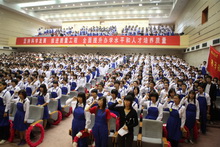 誓師大會分三場進行:第一場由計算機與信息工程學院和經濟學院參訓師生參加,第二場由藝術與傳媒學院和商學院參訓師生參加,第三場由法學院、機械學院參訓師生及合唱隊和廣場聯歡團隊全體成員參加。。