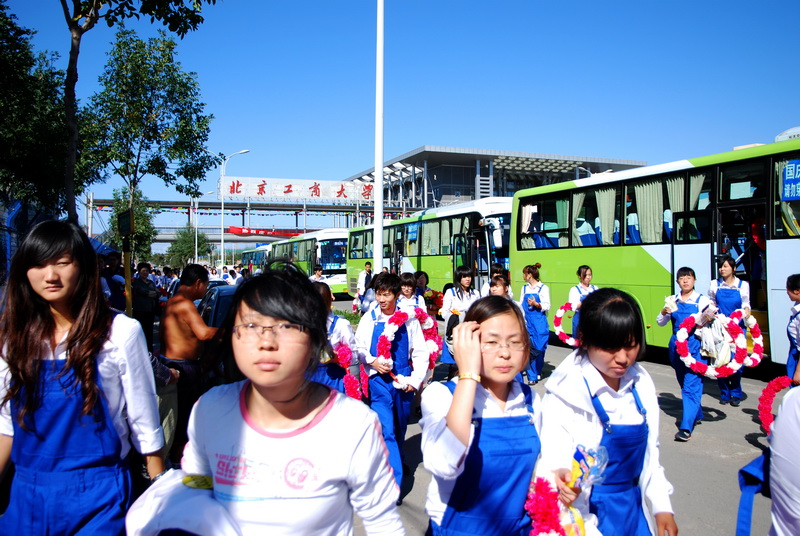 我校參與群眾游行和廣場(chǎng)合唱的2400余名師生已于10月1日凌晨冒雨出發(fā),現(xiàn)在,他們已經(jīng)在天安門廣場(chǎng)等候了五六個(gè)小時(shí)。因?yàn)槠惹械叵胂蜃鎳⑷嗣裾故具@兩個(gè)多月來的苦練成果,這段等待顯得尤其漫長。