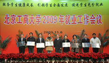 副校長謝志華在大會上宣讀了《2009年就業工作表彰決定》以及《關于成立北京工商大學‘畢業生就業之友聯盟’的決定》。