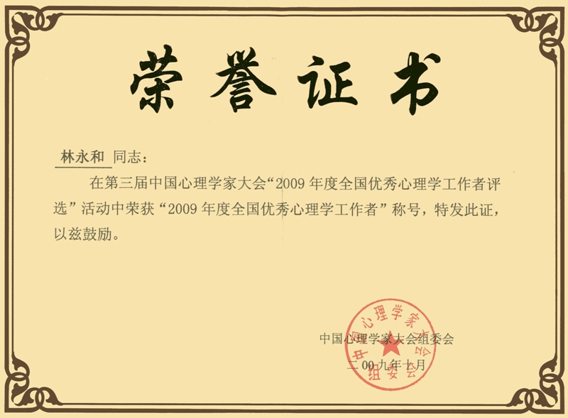 近日,由中國科學院心理研究所主辦的中國心理學家大會在北京人民大會堂隆重開幕。在此次大會上,我校林永和教授榮獲"2009年度全國優秀心理學工作者"稱號,我校北京高校學生心理素質教育工作研究中心榮獲"2009年度全國優秀心理健康服務(教育)機構"稱號。在人民大會堂,全國人大常委會副委員長王文元及有關領導與大會代表合影留念,并為全國優秀心理健康服務(教育)機構和全國優秀心理學工作者隆重頒獎。