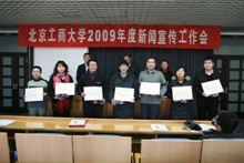 會上宣布了2009年學校新聞宣傳工作先進單位和2009年優秀通訊員名單,并頒發了證書和獎品。(名單見附件)