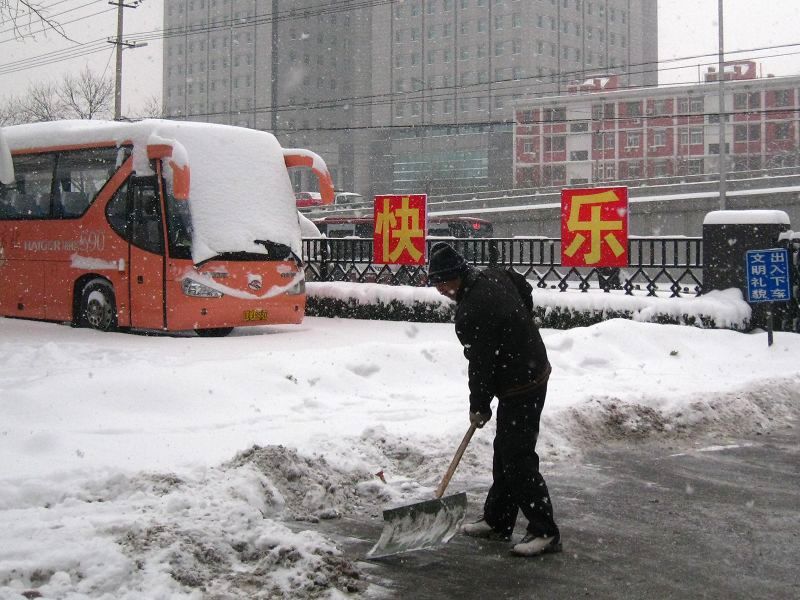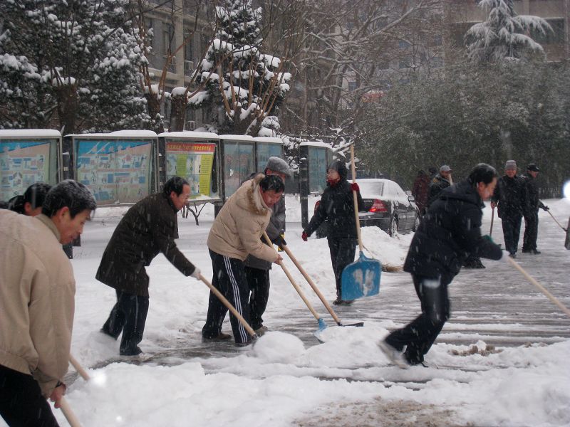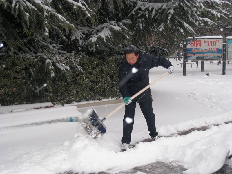 由于降雪沒(méi)有停,為保證節(jié)后師生員工的出行安全,后勤號(hào)召大家發(fā)揚(yáng)不怕疲勞、連續(xù)作戰(zhàn)的精神,要求全體員工4日早7點(diǎn)上班,全部投入到掃雪工作中,全力迎接新年的第一個(gè)考驗(yàn)。有的家遠(yuǎn)同志擔(dān)心路滑不好坐車(chē),早上六點(diǎn)就出家門(mén),顧不上吃早飯。有的同志前一天掃雪感冒了,還是堅(jiān)持參加掃雪。校門(mén)口值班的保安也一同幫助掃雪。