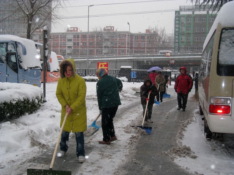 1月3日,北京普降大到暴雪。后勤工作人員在副校長(zhǎng)呼文亮、后勤處處長(zhǎng)魏冰等領(lǐng)導(dǎo)的帶領(lǐng)下,不畏嚴(yán)寒,積極掃雪,確保了節(jié)后師生員工的出行安全。