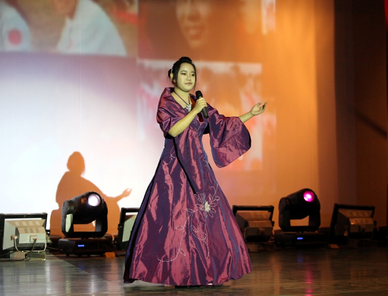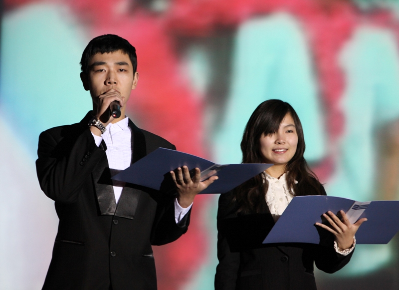 假如在你的印象里“90后”仍是“非主流”、“頹靡一代”的代言人,那么,你“Out”了。由法學09級大一學生自編自演的集古箏、書法、舞蹈為一體的《雪山春曉》以獨特的藝術形式展現了中華民族古典文化的恒久魅力,也再次向觀眾展示了“90后”青春、勃發的精神面貌和優雅情懷。法學092的耿聞捷將古箏名曲《雪山春曉》演繹地淋漓盡致,而法學092的王奪同學更是健筆揮毫寫下了“舉國歡騰,同慶祖國六十華誕;辭舊迎新,喜迎學校甲子慶典”兩行大字。法學092段海霞等同學身著綠衣翩翩起舞,博得全場長久不息的掌聲。