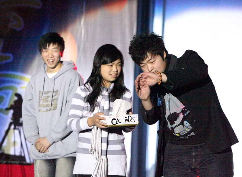 你相信有另外一個世界存在嗎?你想和另一個世界的人連線嗎?如果想,那么,請睜大雙眼,來李其倫的魔法世界,見證奇跡發生的一刻。一張桌子,一個鈴鐺,會有什么發生呢? “小時候,奶奶曾給我講故事……”李其倫神秘的語氣使全場頓時安靜下來, “我在另一個世界結識的朋友,如果你在,請給我一個回應,”只見原來在桌子上靜止不動的鈴鐺在毫無外力作用的情況下突然搖晃起來。面對此情此景,場上幾乎靜止了兩秒鐘,然后爆發出各種驚嘆的聲音,接著是長達10秒鐘的掌聲,將全場氣氛再次推向高潮。