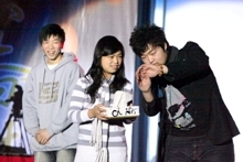 雖然只是在電視機前看過慶祝盛典,剛剛步入大學校門的09級新生擁有著同樣的愛國熱情。一曲動人的《我愛你,中國》唱出了對祖國母親的思戀與祝福。演唱者財務091的吳迪用高亢嘹亮的歌喉將歌曲的優美展現地淋漓盡致,她將歌曲的音調和觀眾的情緒同時帶向了高潮。
