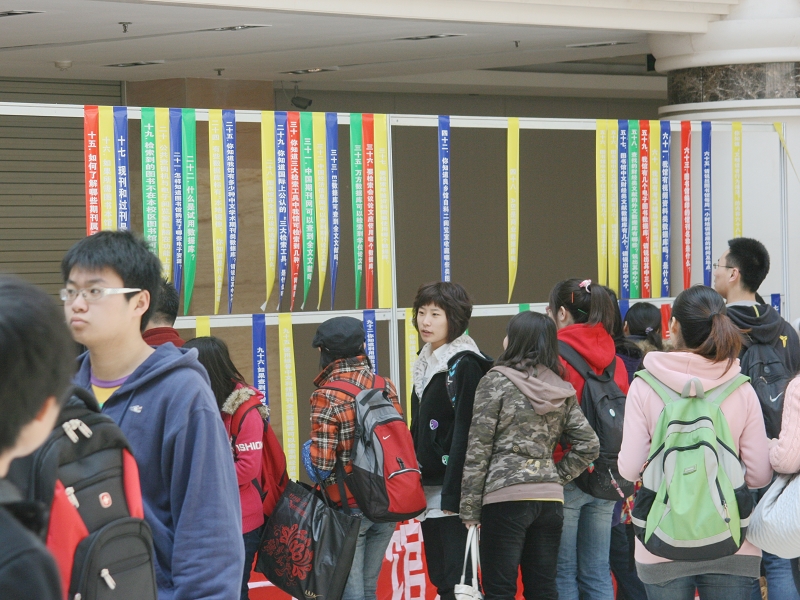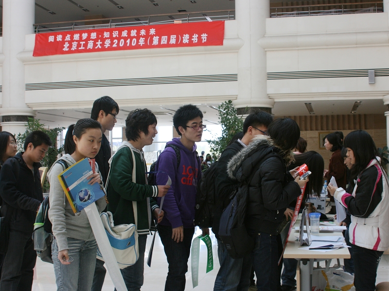 在“閱讀點(diǎn)燃?jí)粝耄R(shí)成就未來”為主題下,我校第四屆讀書節(jié)系列活動(dòng)從4月19日開始在兩校區(qū)展開。從讀書節(jié)標(biāo)志征集、讀書之星的評(píng)選、60種優(yōu)秀圖書書評(píng)展、組織師生走訪美國(guó)駐華大使館圖書館,到23日世界第15個(gè)讀書日系列活動(dòng)達(dá)到高潮。