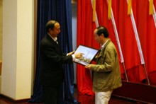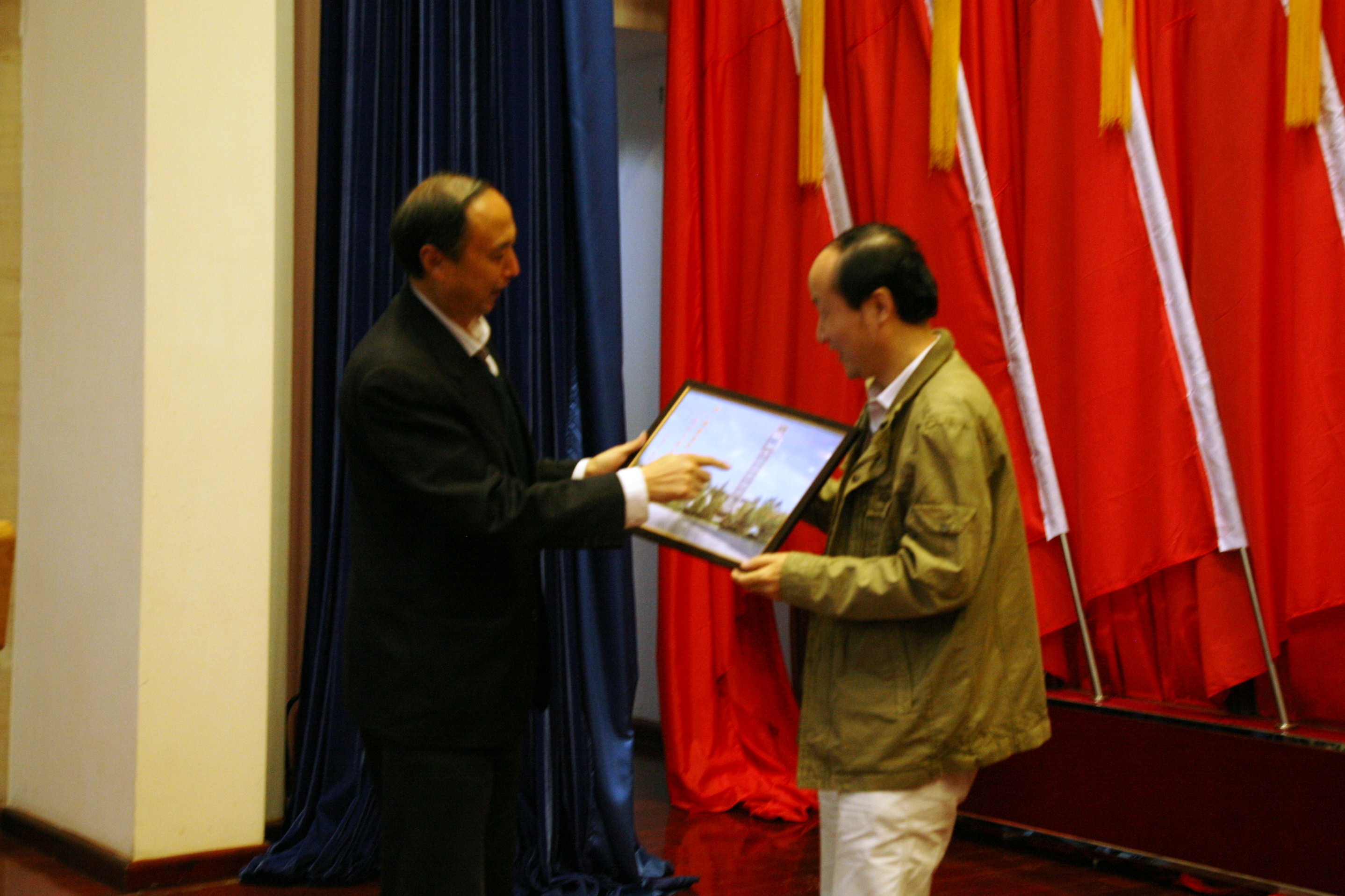 講座開始之前,校黨委副書記盧思鋒為胡敏老師贈送了一個以我校標志建筑物——鐘樓為背景的相框。盧思鋒副書記希望胡敏老師的演講能夠為同學們學習英語開辟新的航道,并希望我校學生能夠汲取良好的資源,學有所成。