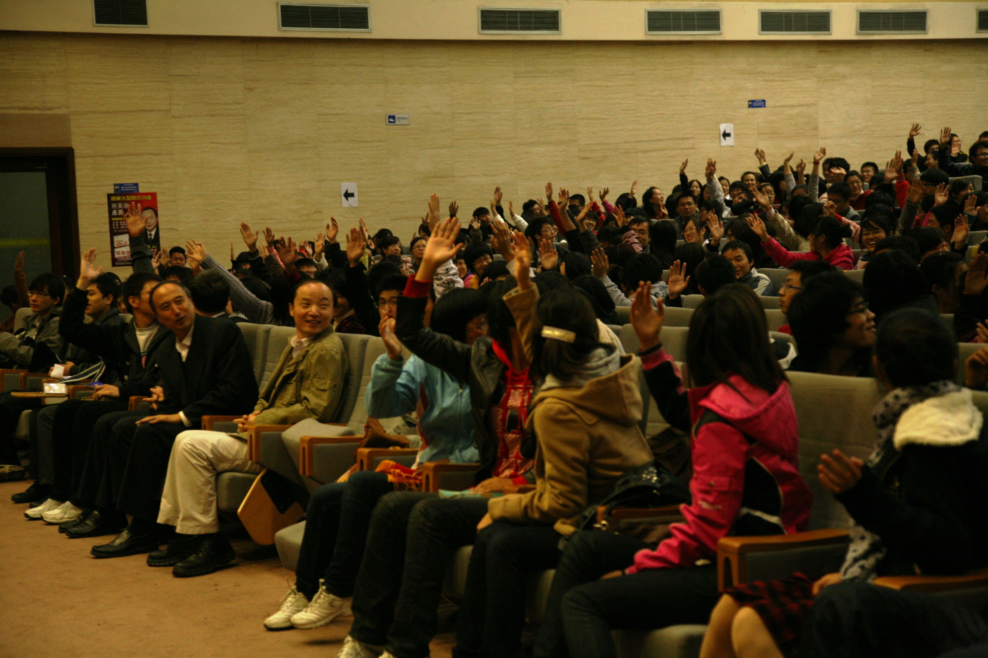 最后,胡敏老師用“我堅持,我成功”和“目標加專注再加上堅持等于成功”的成功公式結束了講座。他還向與會同學贈送了他的新作《用英語點亮人生》,與會同學與胡敏老師進行了交流并邀請胡敏老師簽字留念。