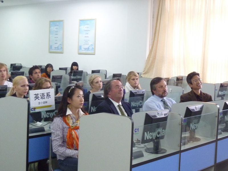 報告會由副院長劉紅艷主持,院長楊懷恩、英語系和公外一部二部主任、副主任、部分教師、英語系07級學生及部分留學生參加了報告會。劉紅艷副教授首先對林•高登博士的到來表示熱烈歡迎和衷心感謝,并介紹了高登教授的學術簡歷和相關成就。林·高登博士從讀寫能力的基礎理論構架及背景知識入手,詳細介紹了她的研究成果“SQ3R 系統閱讀法”,對提高英語教科書閱讀效度提出了實際可行的策略方案,即調查→問題→閱讀→背誦→回顧的五步法。