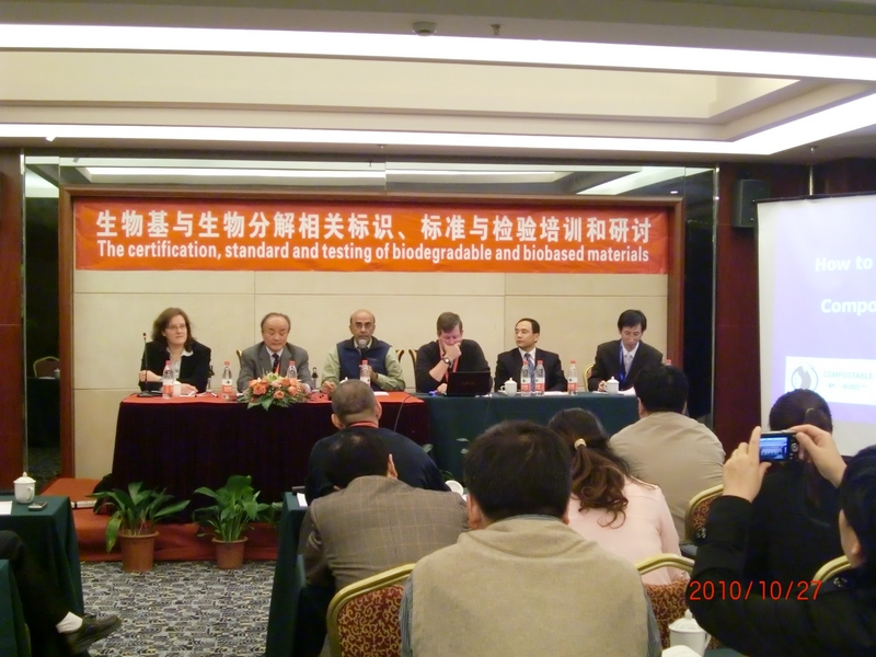 會議就北美地區可堆肥料的最新進展、日本生物降解和生物基塑料的發展、韓國生物降解塑料工業發展、歐洲可堆肥塑料認證及市場情況進行了交流,并對聚乳酸產品的最新進展、縮聚法合成高分子量聚乳酸及其納米復合材料、微生物合成PHA材料、聚乳酸改性等學術問題進行探討。另外,在標準、測試及認證咨詢會上,與會代表圍繞如何獲得美國BPI認證,如何獲得日本JBPA認證、中國相關標準培訓及認證和國際市場形勢展開討論。