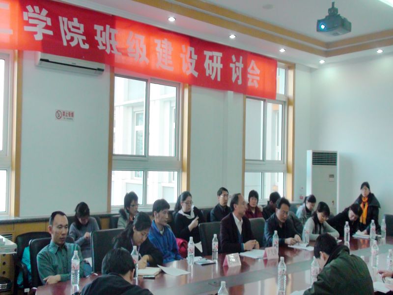 11月24日下午,化學(xué)與環(huán)境工程學(xué)院在化工樓召開2010年度班級建設(shè)工作研討會。黨委副書記盧思鋒、學(xué)生處副處長徐紅京、院長兼總支書記徐寶財(cái)、副院長曹學(xué)麗及40余位已經(jīng)或?qū)⒁獡?dān)任班主任工作的老師參加了此次研討會。總支副書記何猛老師主持了此次研討會。