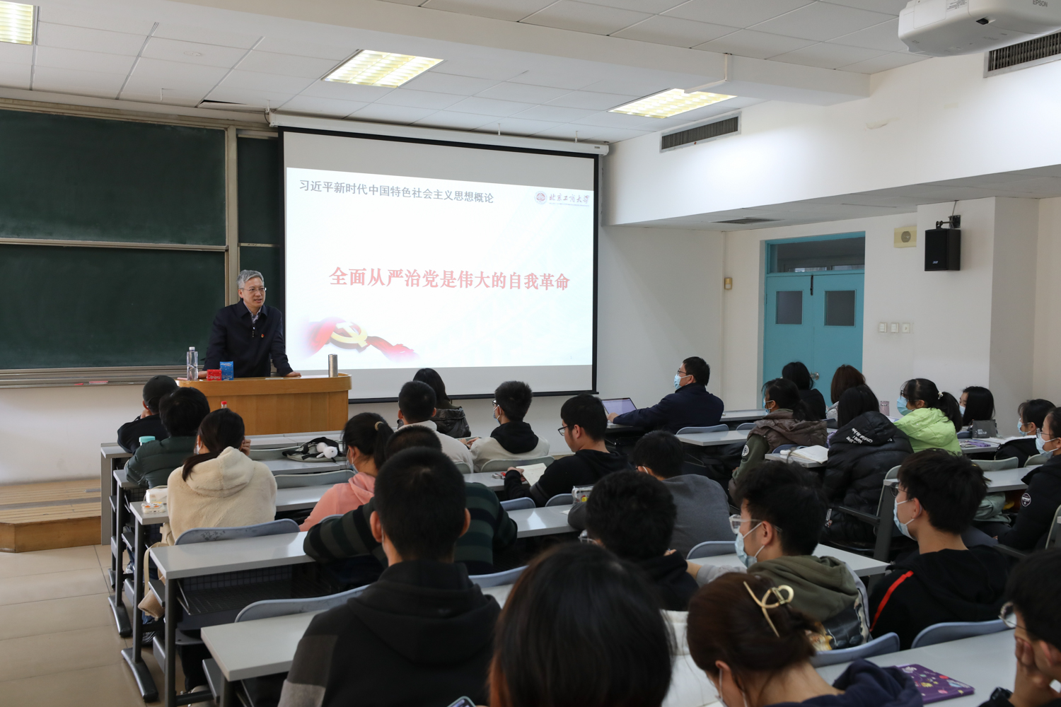黨委副書記李中奇結合自身的工作實際,圍繞“黨的百年輝煌和挫折”和“全面從嚴治黨是偉大的自我革命”兩個主題,結合百年奮斗重大成就和歷史挫折進行了深入淺出的分析,對全面從嚴治黨的自我革命性質進行了精彩的講解,贏得了學生的廣泛認可。