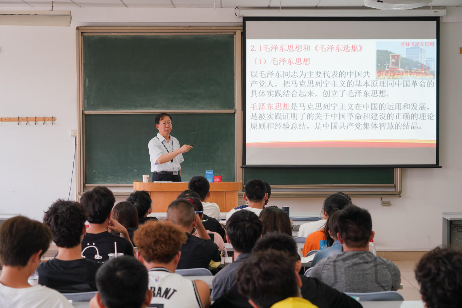 黨委副書記、校長孫寶國院士用豐富的史實、大量的圖片對毛澤東思想及其歷史地位進行了生動的講解,結合習近平總書記的相關論述深入分析了毛澤東的成長歷程、毛澤東思想的科學內容和歷史地位、毛澤東思想指導下中國革命走向勝利和社會主義現代化建設取得的巨大成就。孫寶國校長對毛澤東思想的深情講授,打動了學子們,同學們在課后和孫校長進行了互動交流。
