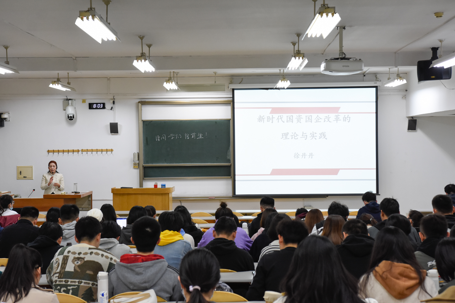 黨委常委、副校長徐丹丹圍繞中國特色社會主義經濟專題,為我校研究生深入講解了新時代國資國企改革的理論與實踐,就充分堅持黨的領導,加強黨的建設這一國有企業的根與魂,把黨的領導和現代企業制度統一起來推動國資國企改革進行了深入淺出的講授。