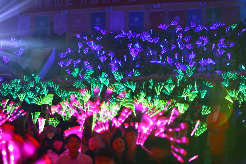 全場(chǎng)燈光熄滅,粉、黃、藍(lán)、綠不同顏色的熒光棒一時(shí)閃動(dòng)整個(gè)會(huì)場(chǎng),洋溢著喜悅、興奮、期待的心情,鼓掌小手近乎瘋狂的“擊掌聲”響徹全場(chǎng)。在大家的期待中,元旦晚會(huì)的大幕終于拉開(kāi),一個(gè)個(gè)獨(dú)具特色的節(jié)目把觀眾的熱情推向高潮。除了最光鮮的舞臺(tái),會(huì)場(chǎng)中還有哪些你沒(méi)有看到的人或事兒呢,就讓記者帶你一覽元旦花絮。