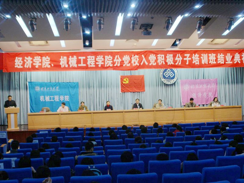 1月5日,經濟學院、機械工程學院分黨校入黨積極分子培訓班結業典禮在良鄉校區舉行。參加本次大會的有校黨委副書記、紀委書記張德玉、經濟學院黨總支書記李寶仁、機械工程學院黨總支書記呂東燕、經濟學院黨總支副書記馬韜光、機械工程學院黨總支副書記田宏、經濟學院團總支書記王海偉、機械工程學院團總支書記鄭光。本次大會由機械學院輔導員鄧浩主持。