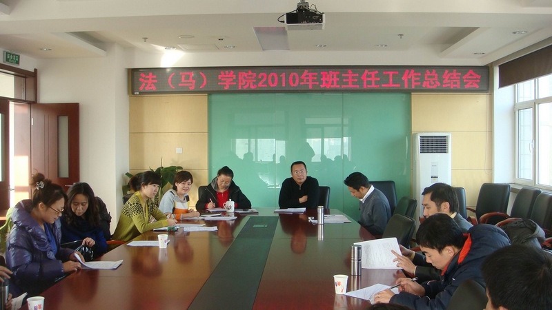 1月7日下午,法(馬)學院在阜成路校區召開了2010年班主任工作總結會議,出席會議的有學院黨總支書記張秀芬、院長李仁玉、副院長謝安平以及各班主任教師,學院黨總支副書記文四英主持了會議。
