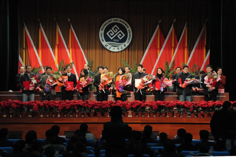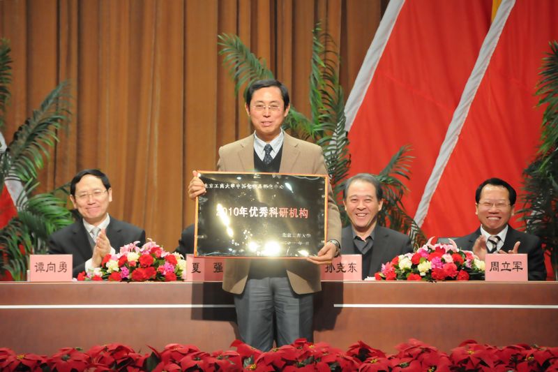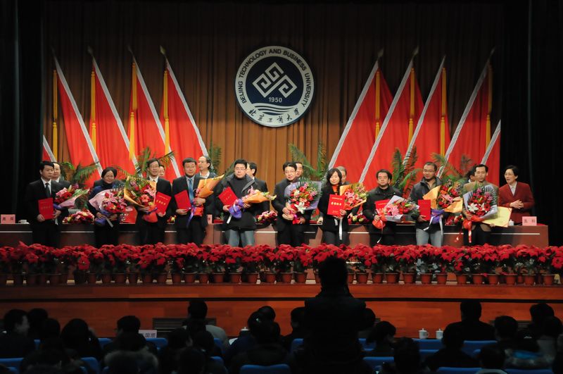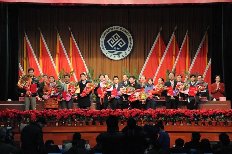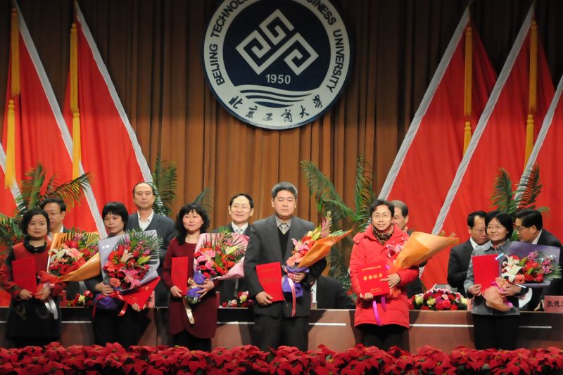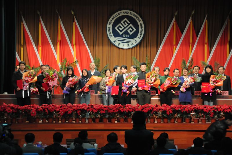 副校長李朝鮮宣讀了2010年度科研表彰名單。北京市科協領導、校領導為獲獎單位代表和個人頒發了榮譽證書。獲獎單位代表化學與環境工程學院王成濤教授、獲獎個人代表經濟學院胡俞越教授先后發言,分享了獲獎后激動與喜悅的心情,暢談了獲獎的感言和如何做好科研的體會,表達了今后要再接再厲再創新成績的決心。