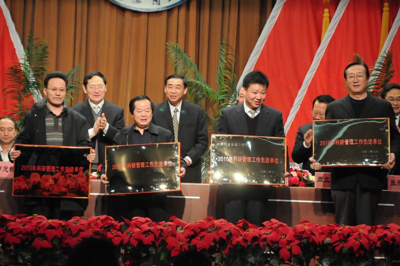 譚向勇校長在講話中對2010年的科研工作表示滿意。他說,2010年全校師生對科研重要性的認識又有了進一步提升,教師對科研的熱情進一步得到激發,科研經費增長速度很快,達到1.1028億元,比2009年增長48.43%,首次突破一億大關;重要科研項目由2009年的20項增長到2010年的51項,增長155%;2010年六大檢索論文292篇,比2009年的102篇增長186.27%。學校要繼續營造搞科研促教學氛圍,進一步激發教師搞好科研的積極性,鼓勵更多的教師進入科研領域,提升教學質量。 校長希望全校師生繼續提高對科研工作的認識,正確認識教學和科研之間的關系,克服對科研的畏難情緒,確定自己的科研定位并加入科研團隊,以高尚情懷從事科研,不斷提升科研的質量。 校長要求,2011年的科研工作一方面是確??蒲薪涃M繼續增加,另一方面要進一步規范科研管理工作,努力把學??蒲泄ぷ魈岣叩揭粋€新的水平。